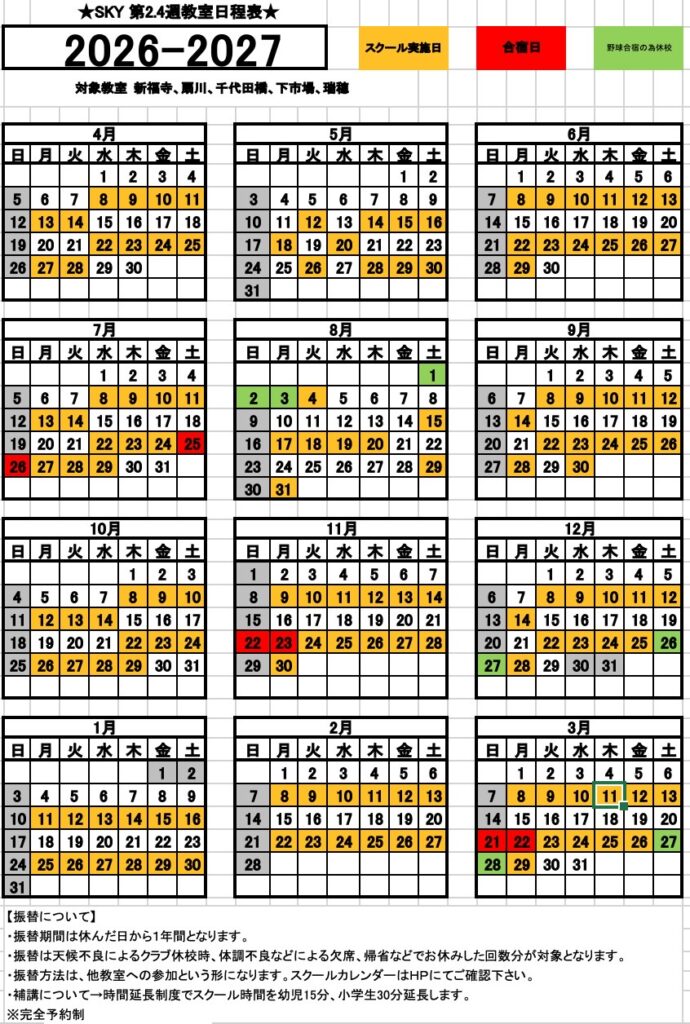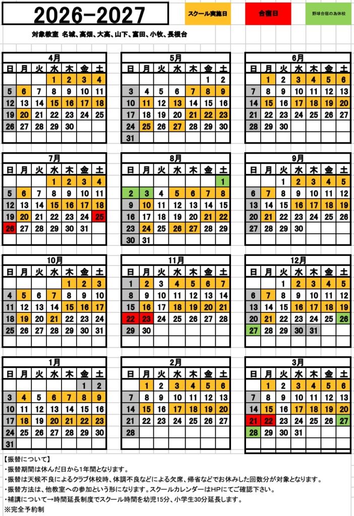 2025~2026年度スクールカレンダー